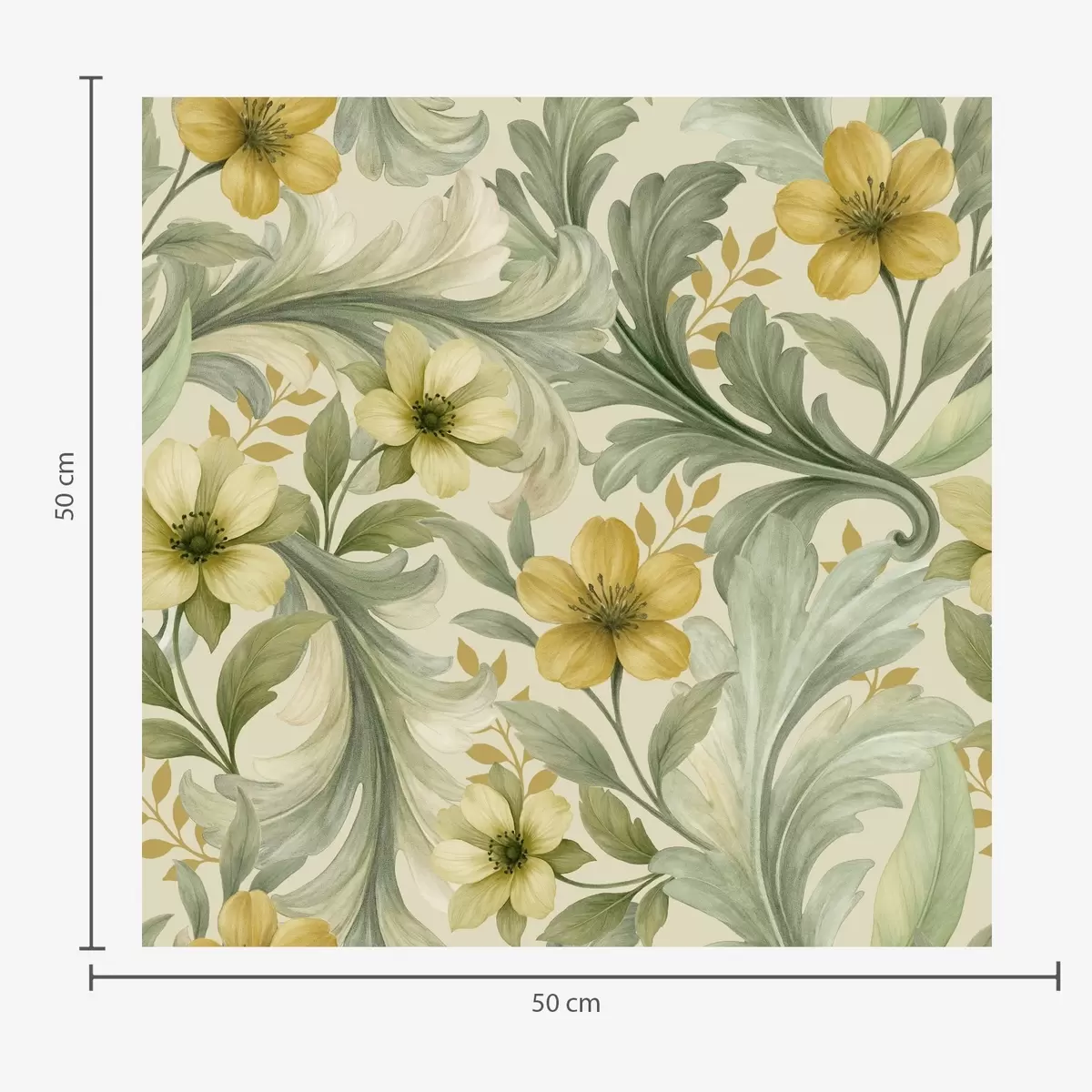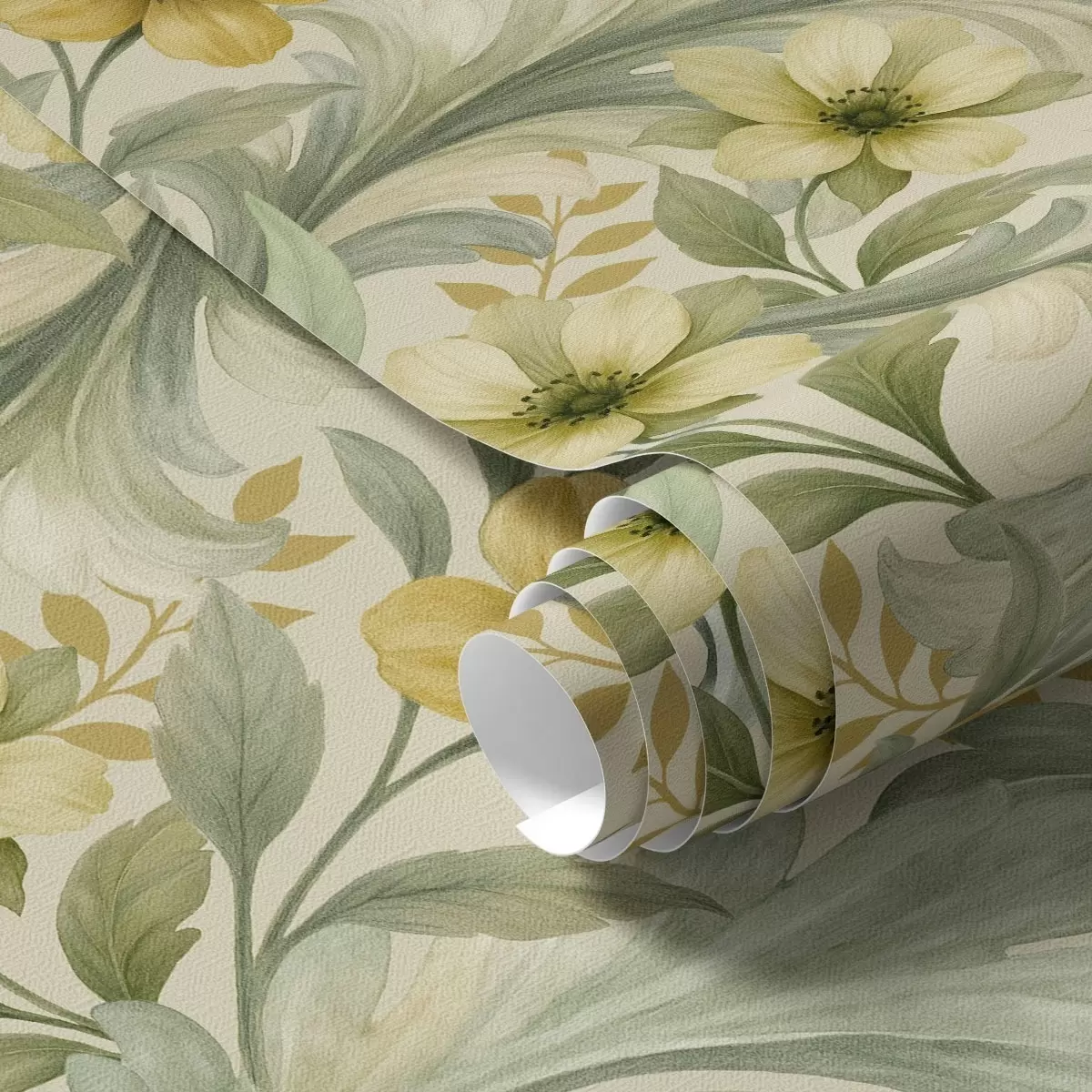 Baggrunde Akantusruller med blomster i grønne og gule nuancer Nr. a00749