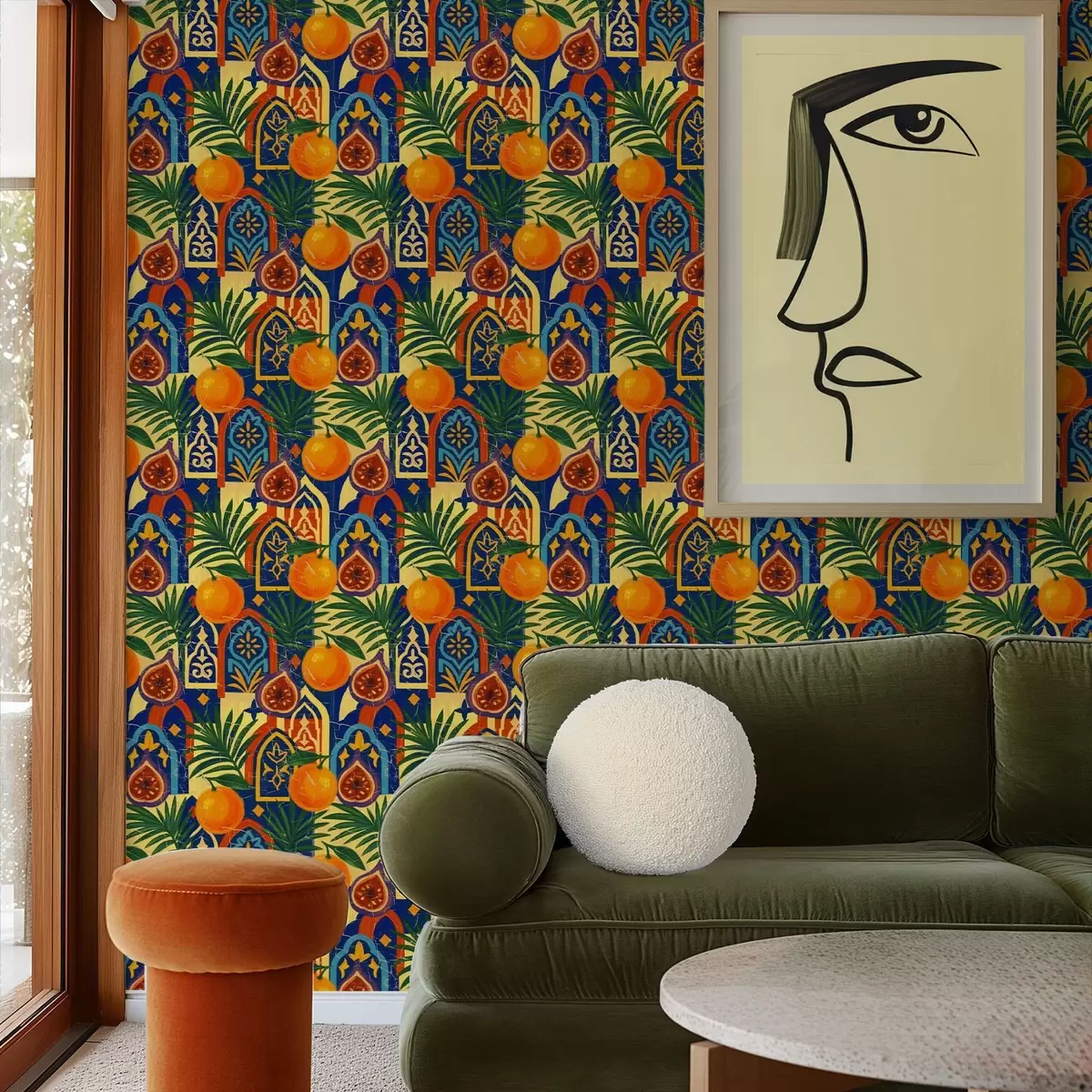 Baggrunde Lyse appelsiner, palmeblade og marokkanske buer Nr. a00767