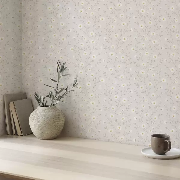 Baggrunde Små tusindfryd på kviste, varm beige Nr. a00777
