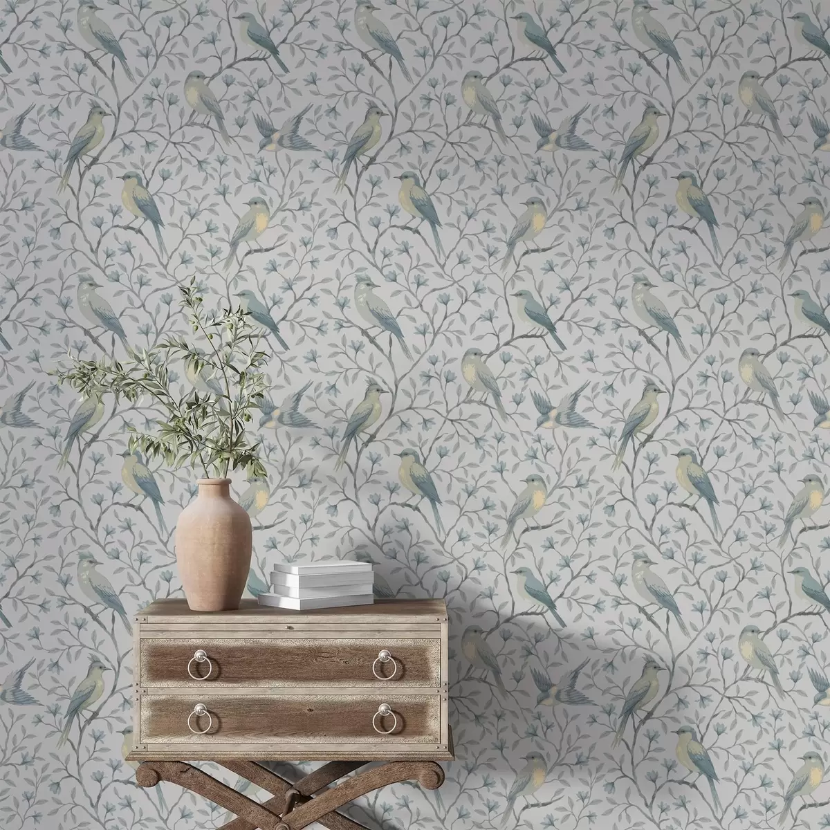 Baggrunde Fugle på grene, gråblå farve Nr. a00782