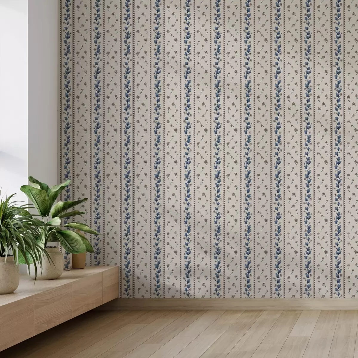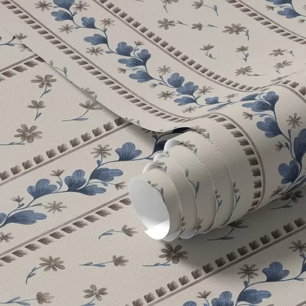 Baggrunde Lodrette blomsterstriber i blåbrune nuancer Nr. a00811v3
