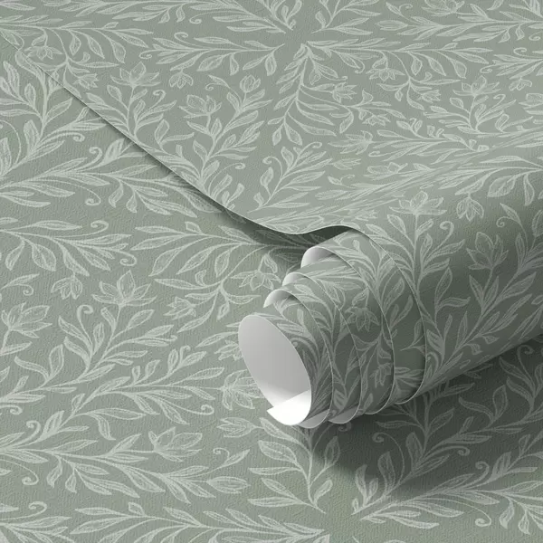 Baggrunde Botanisk damask på mint-oliven baggrund Nr. a00815
