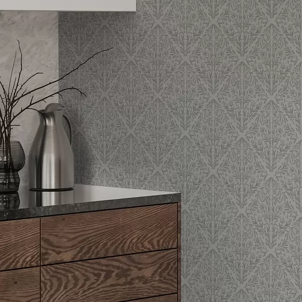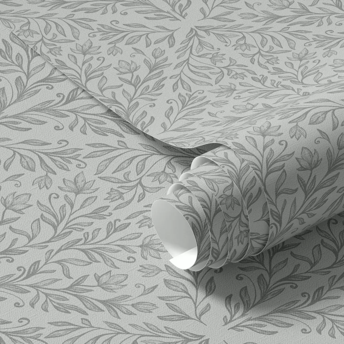 Baggrunde Botanisk damask i lysegrå med bløde konturer Nr. a00815v2