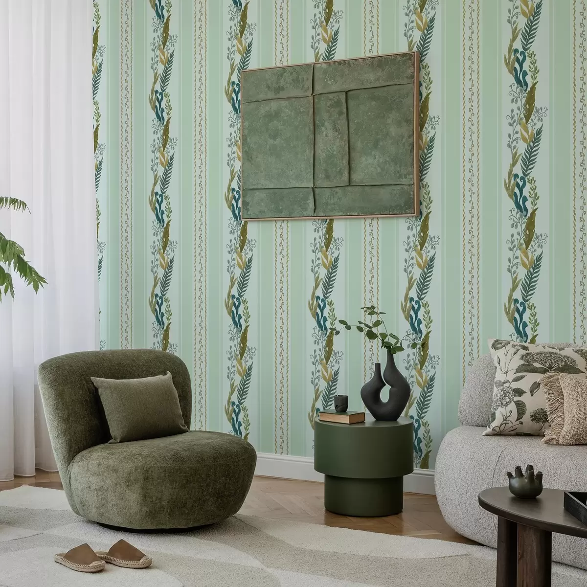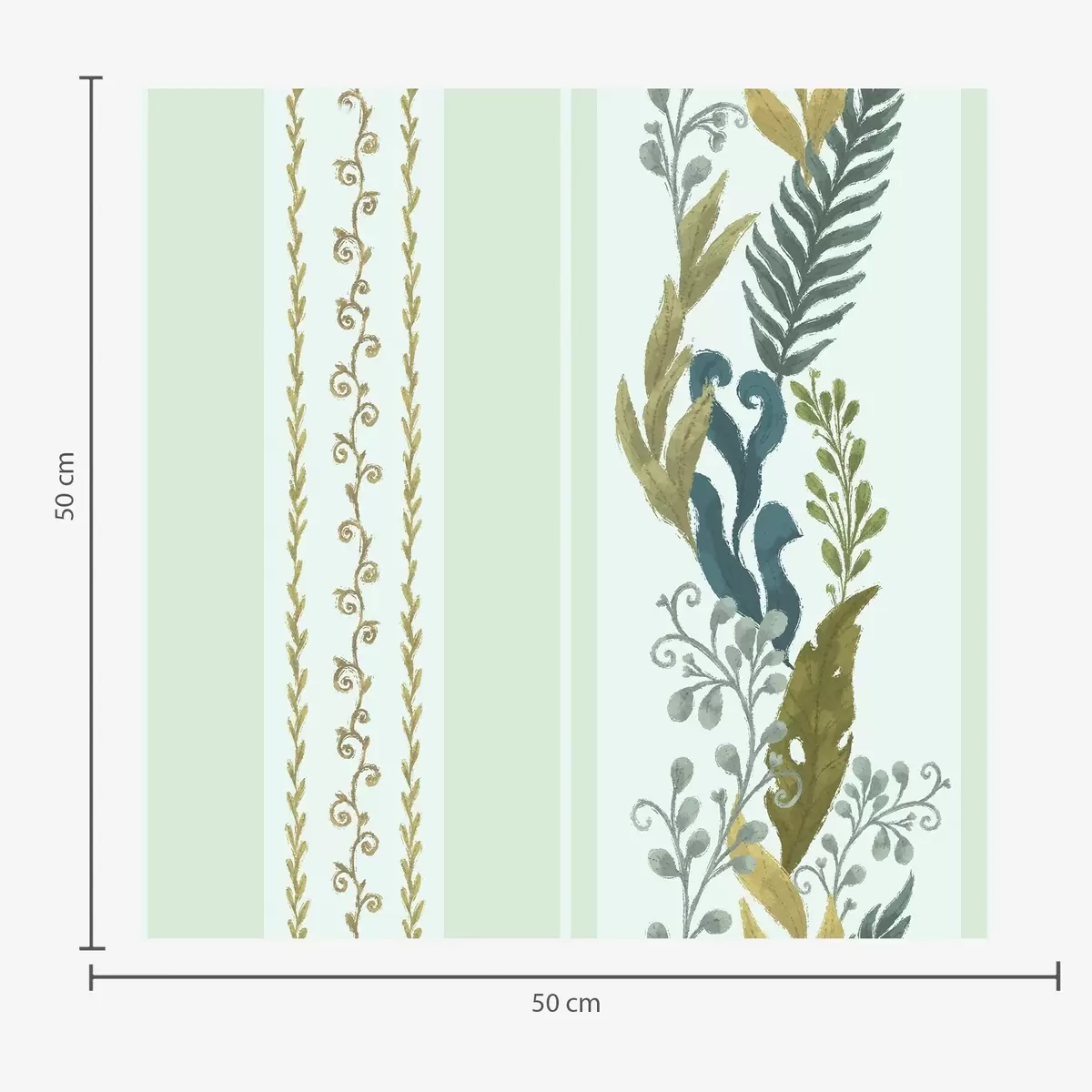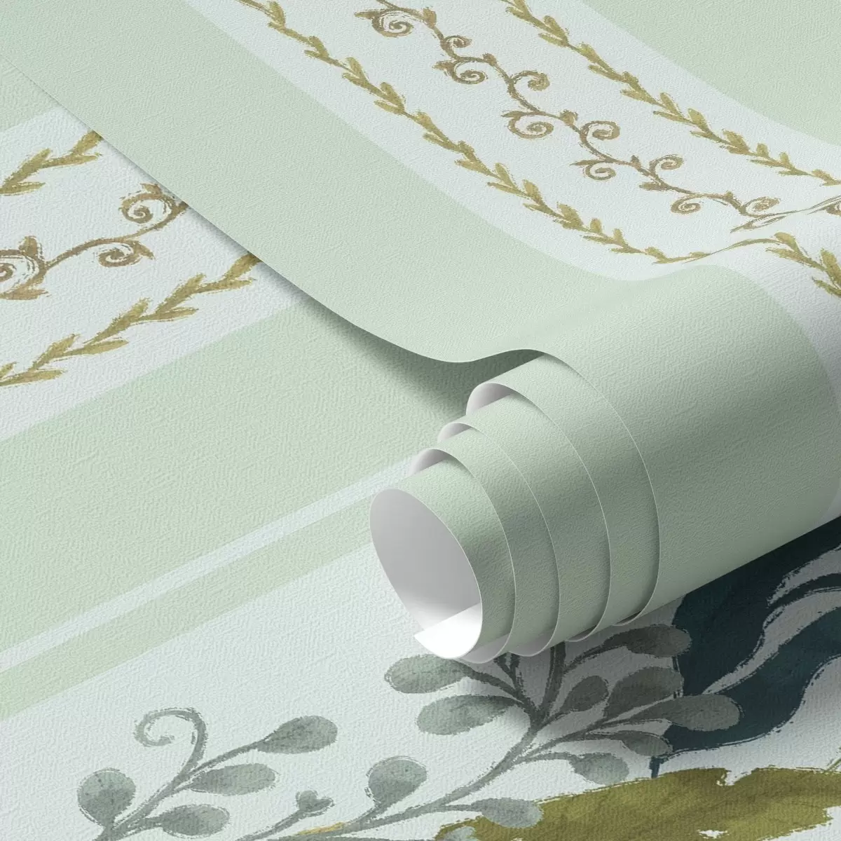 Baggrunde Brede striber med maleriske grene på blød mint Nr. a00825v1