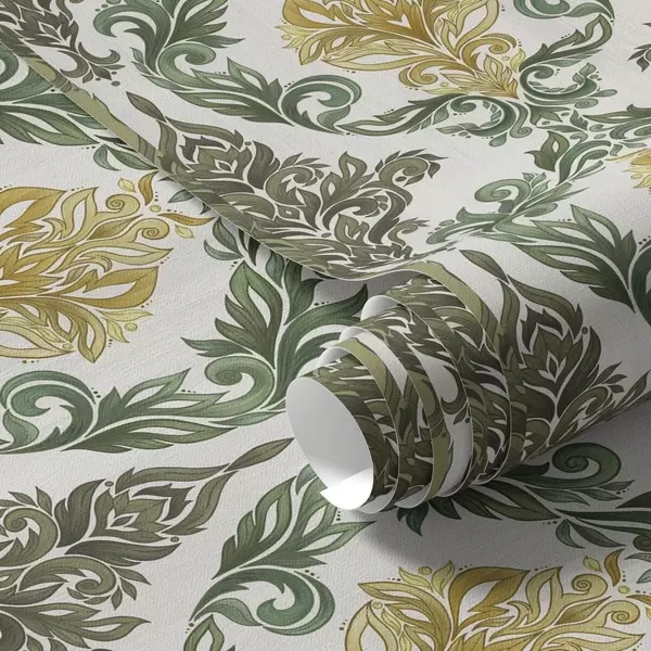 Baggrunde Damask med grønne krøller på lys baggrund Nr. a00828v1