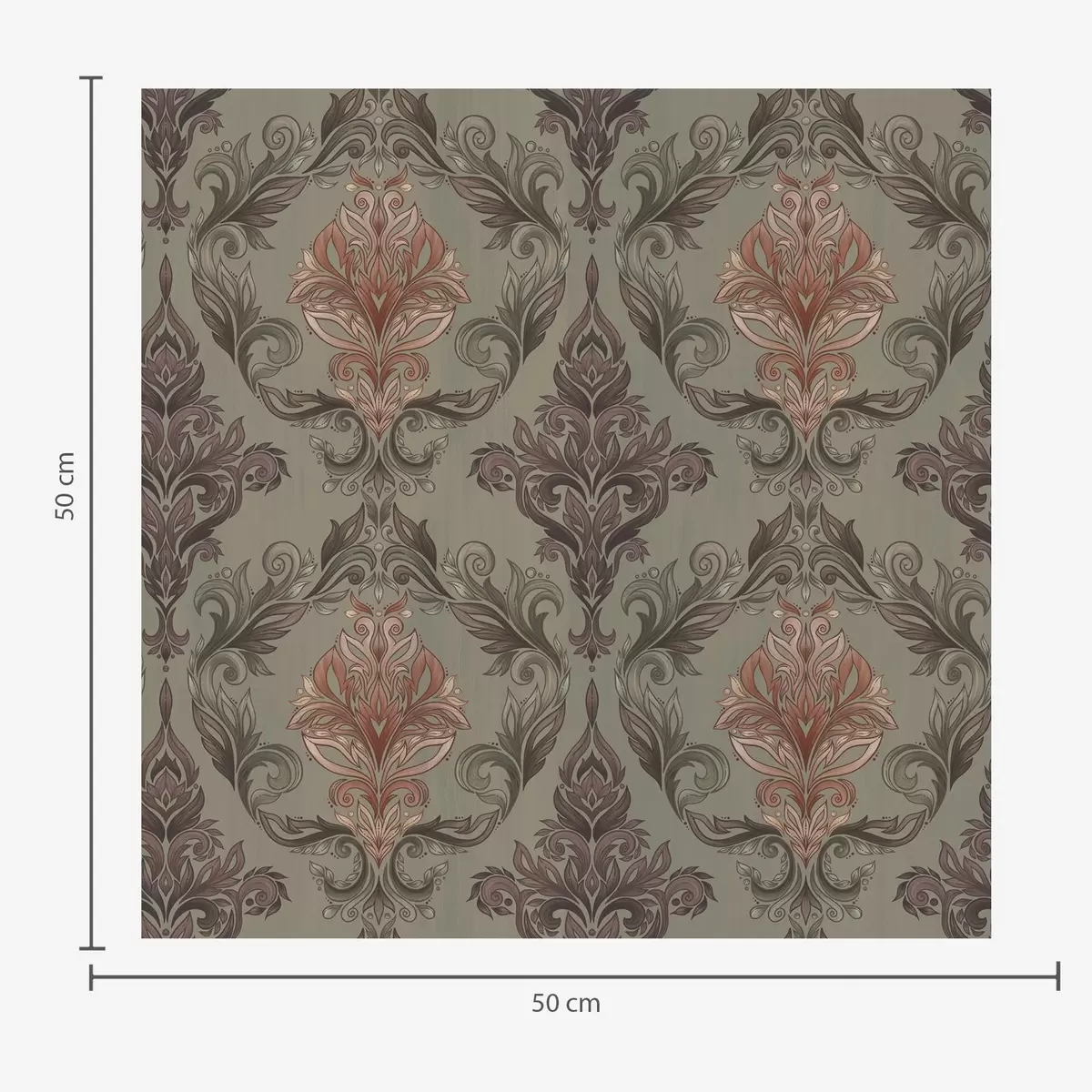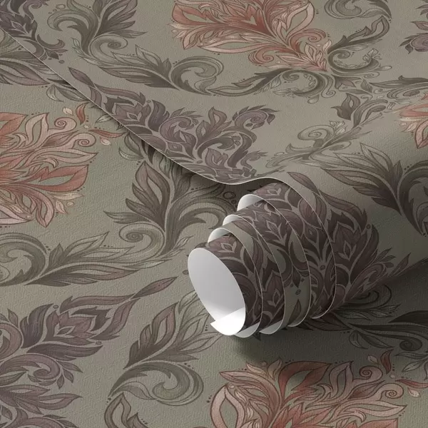 Baggrunde Terracotta-damask på dæmpet olivengrøn baggrund Nr. a00828v3