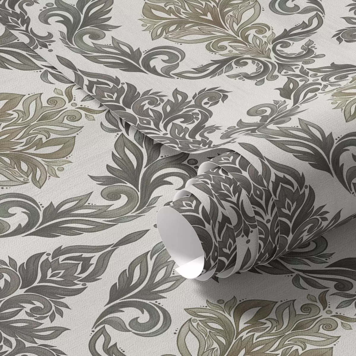 Baggrunde Damask på lys baggrund, olivenbrune accenter Nr. a00828v6