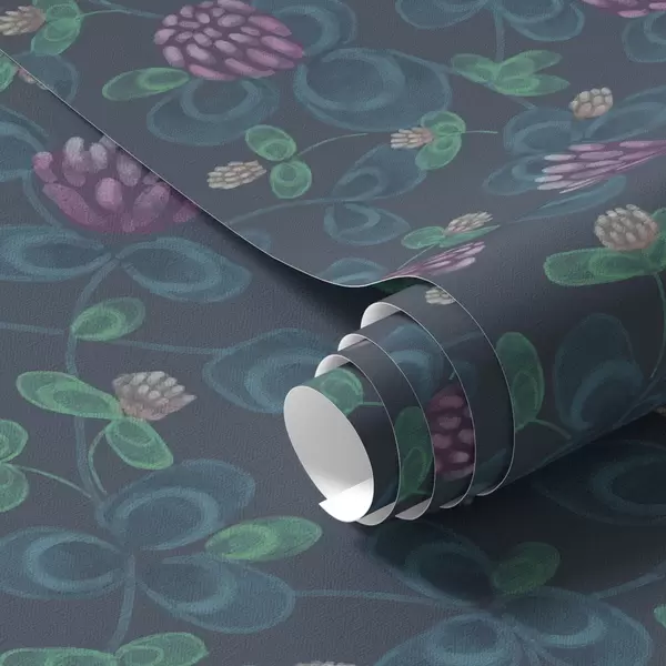 Baggrunde Kløver med lilla blomster på mørkeblå baggrund Nr. a00836