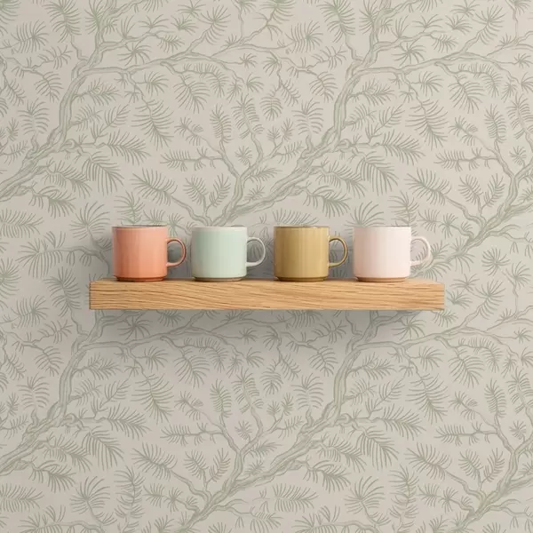 Baggrunde Fyrretræsgrene i lysegrønne nuancer på beige baggrund Nr. a00838v1