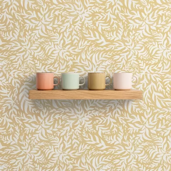 Baggrunde Hvidt bladmønster på varm okker, hvirvlende rytme Nr. a00845