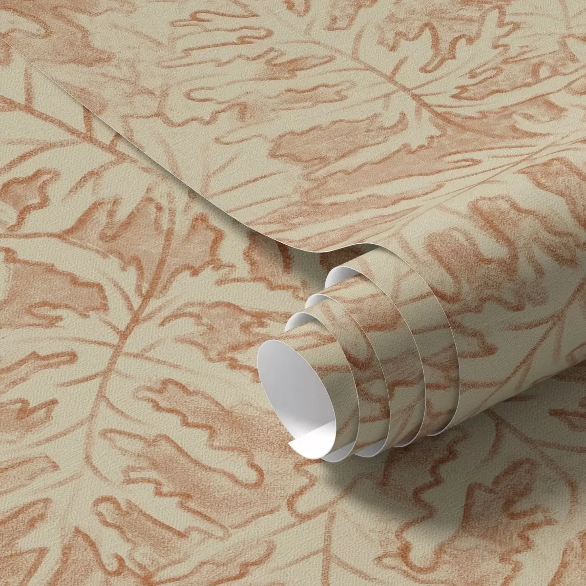 Baggrunde Store egeblade i terrakotta på cremefarvet baggrund Nr. a00846