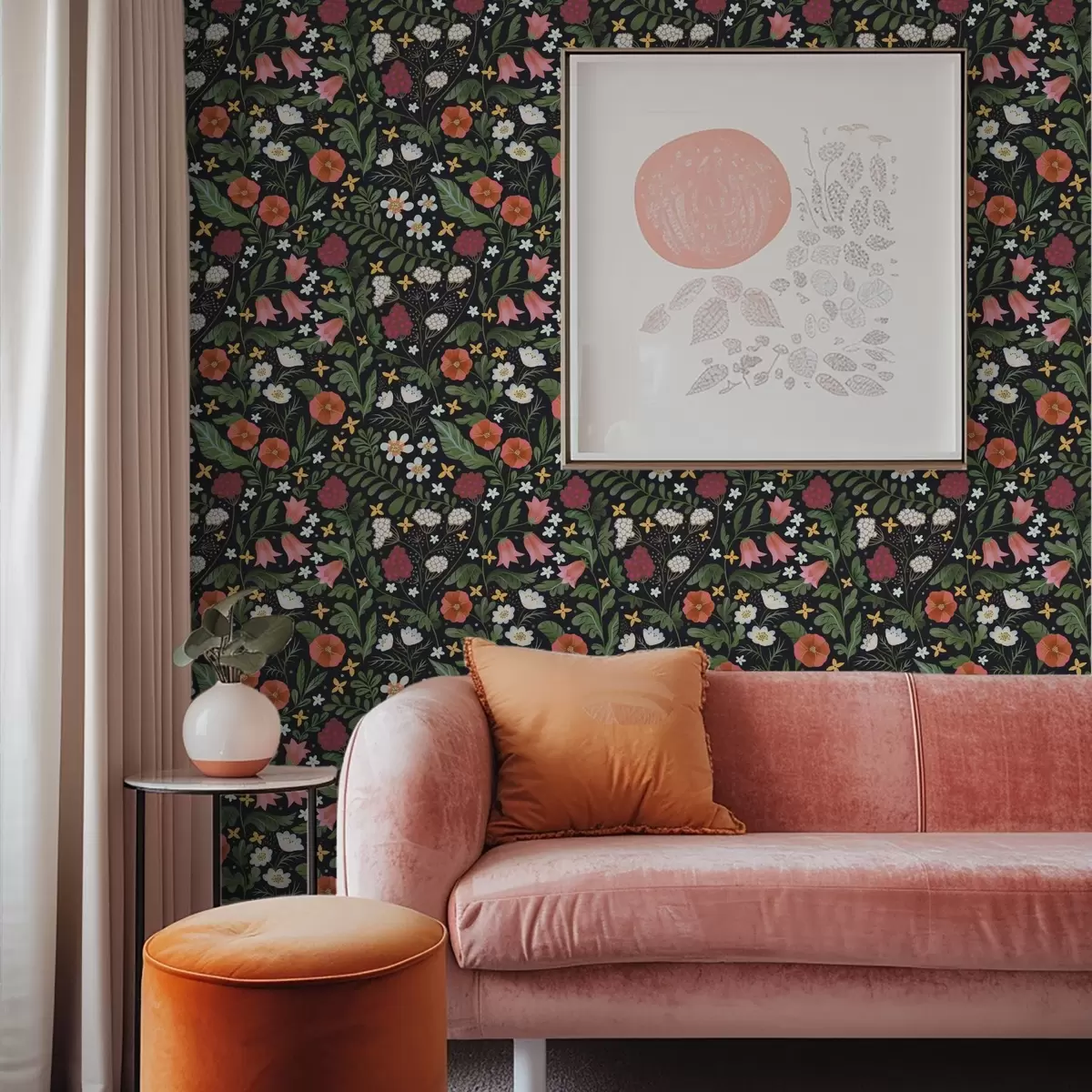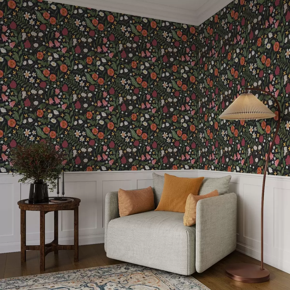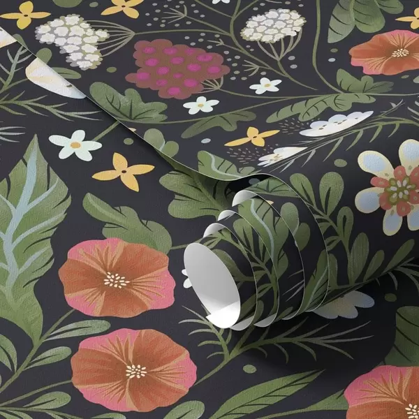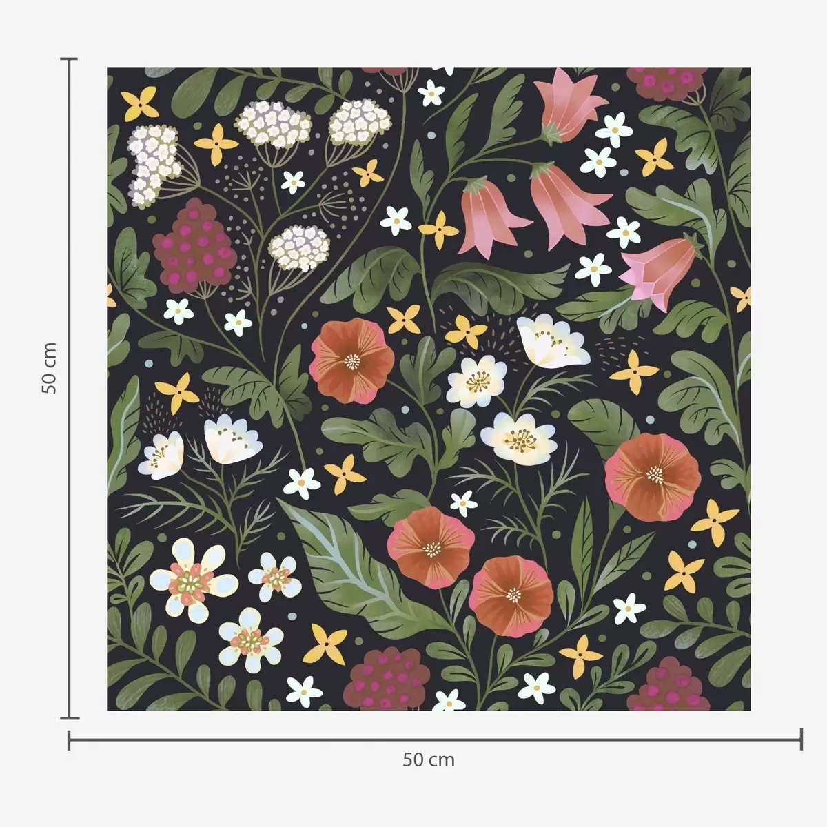 Baggrunde Vilde blomster og bær på dyb sort baggrund Nr. a00849v3