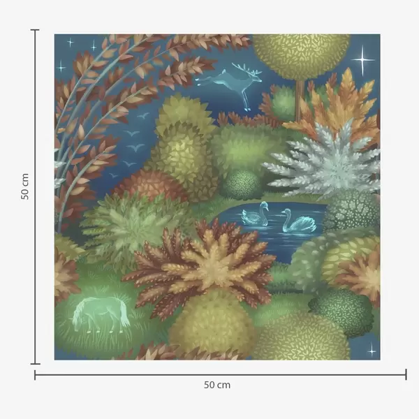 Baggrunde Eventyrlig nattehave med sø og lysende dyr Nr. a00851