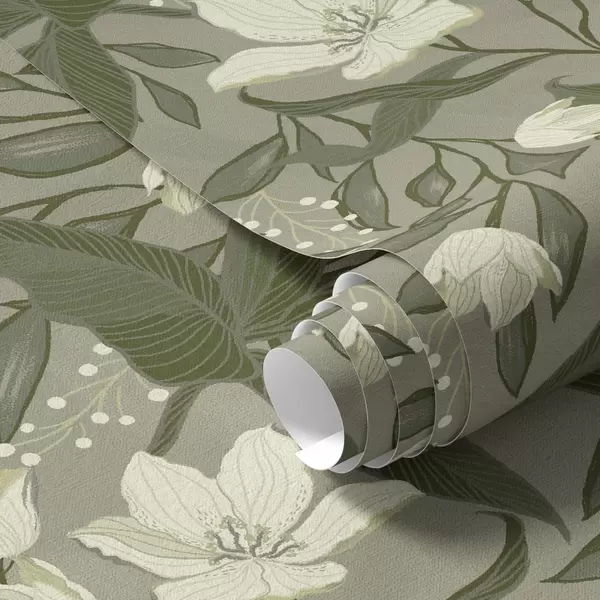 Baggrunde Bleg liljer og blade på grå-oliven Nr. a00854
