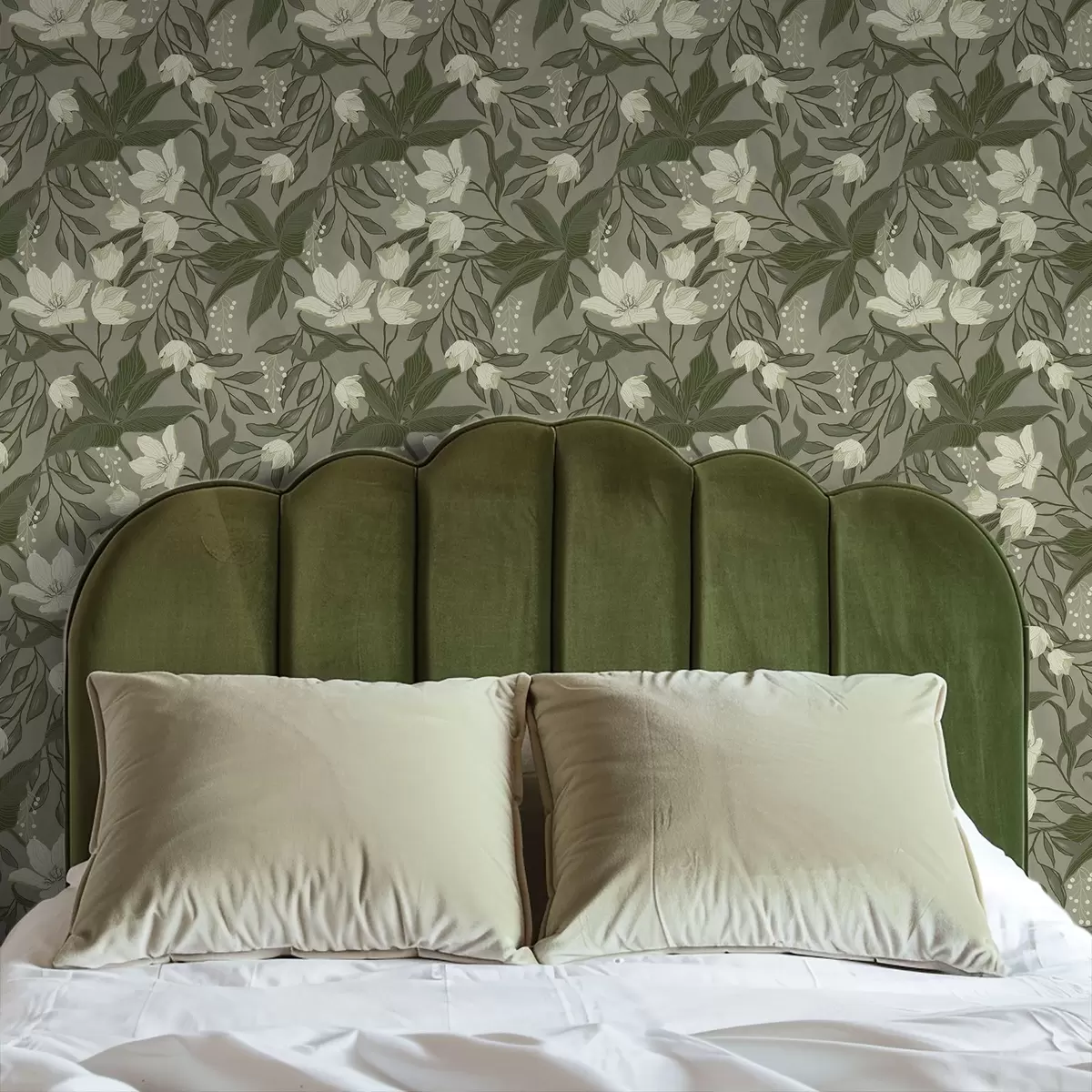 Baggrunde Bleg liljer og blade på grå-oliven Nr. a00854