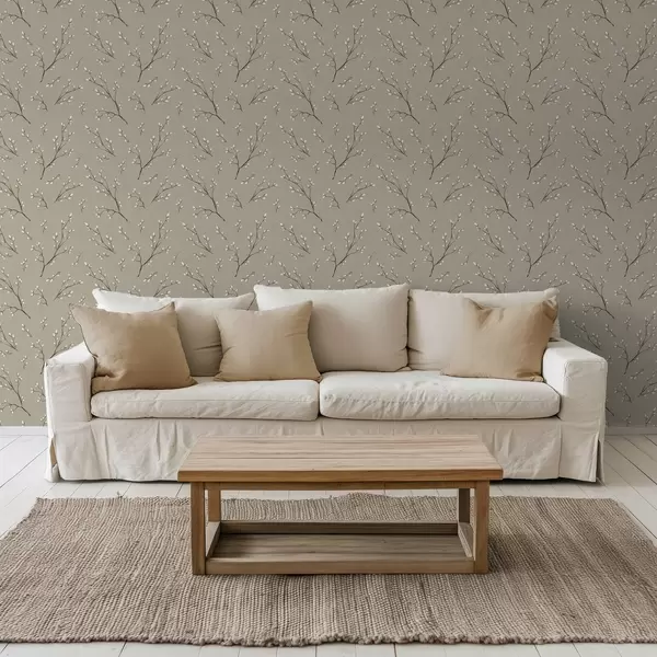 Baggrunde Kviste med hvide knopper på taupefarvet baggrund Nr. a00861