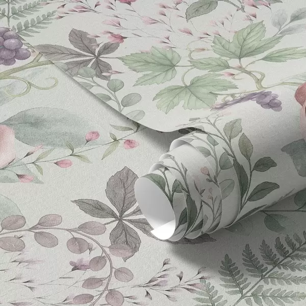 Baggrunde Pastelhave med roser, bregner og druer Nr. a00867
