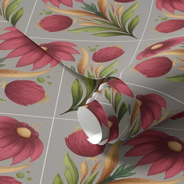 Baggrunde Symmetrisk blomsterornament på grå baggrund med diagonaler Nr. a00869