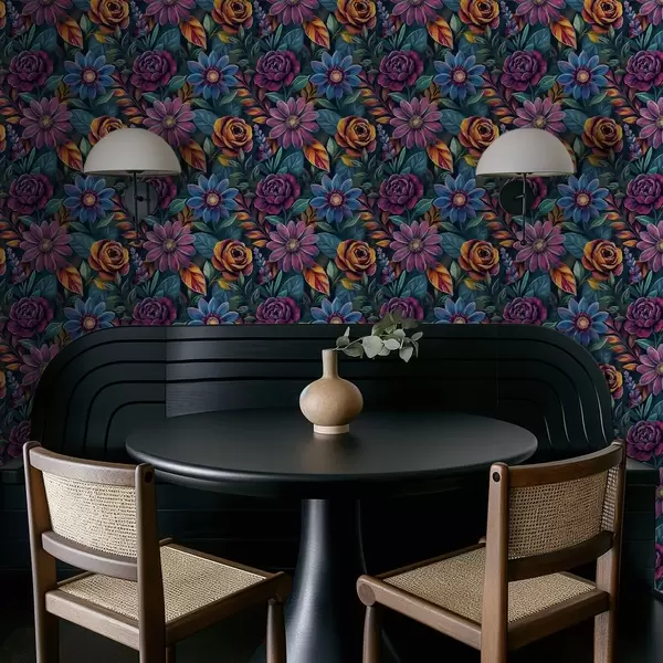 Baggrunde Levende blomster i juvelfarver på mørk marineblå baggrund Nr. a00871
