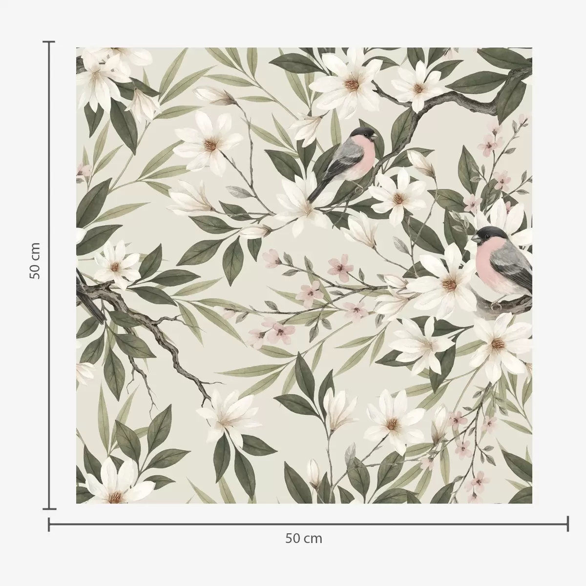Baggrunde Dompap med hvid bryst på grene med cremefarvede blomster Nr. a00889