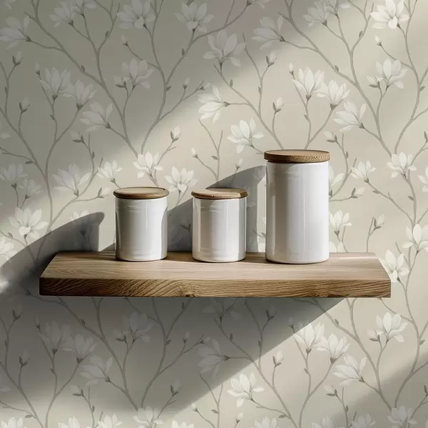 Baggrunde Lyse magnolier på slanke beige grene Nr. a00890