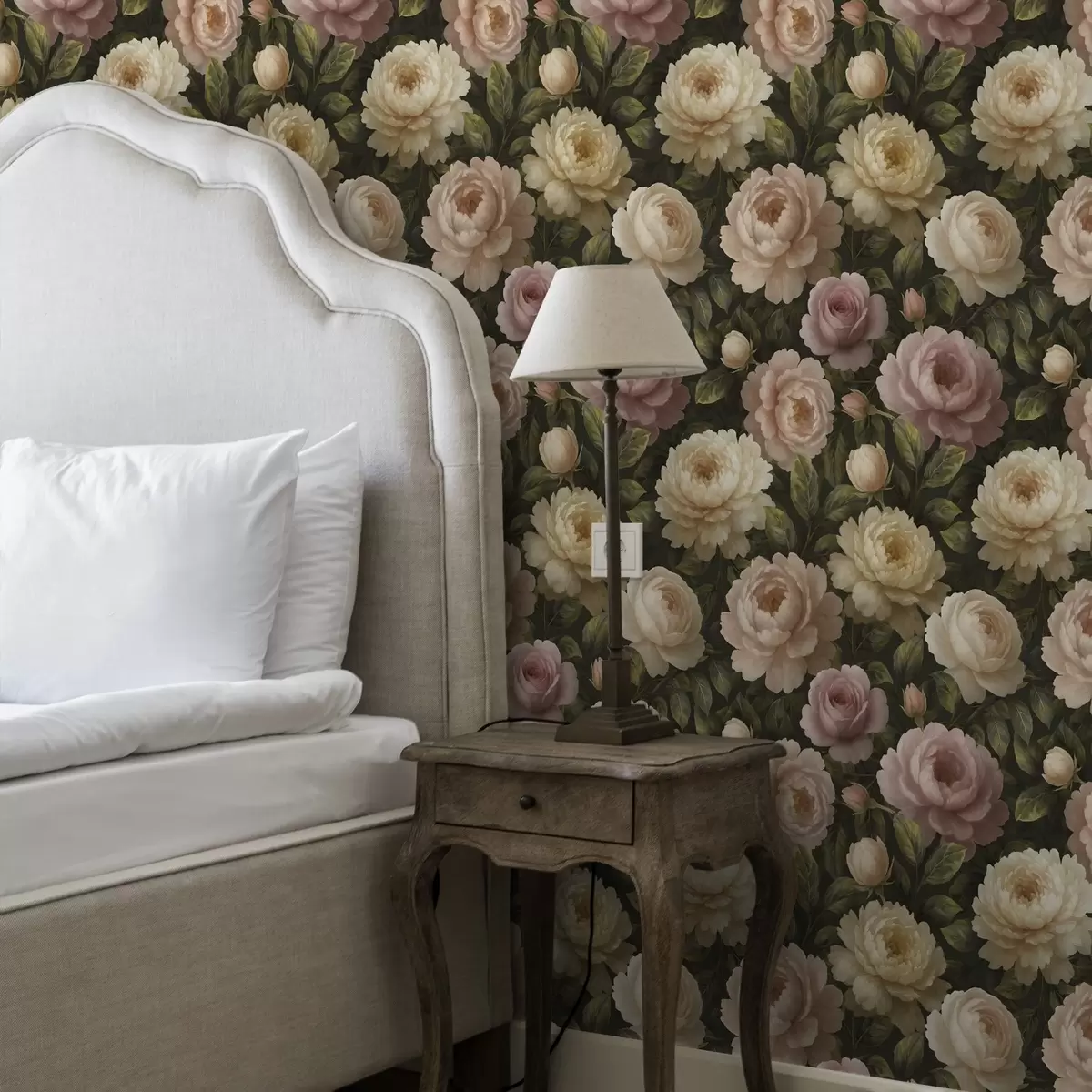 Baggrunde Romantiske pæoner på en mørk botanisk baggrund Nr. a00893