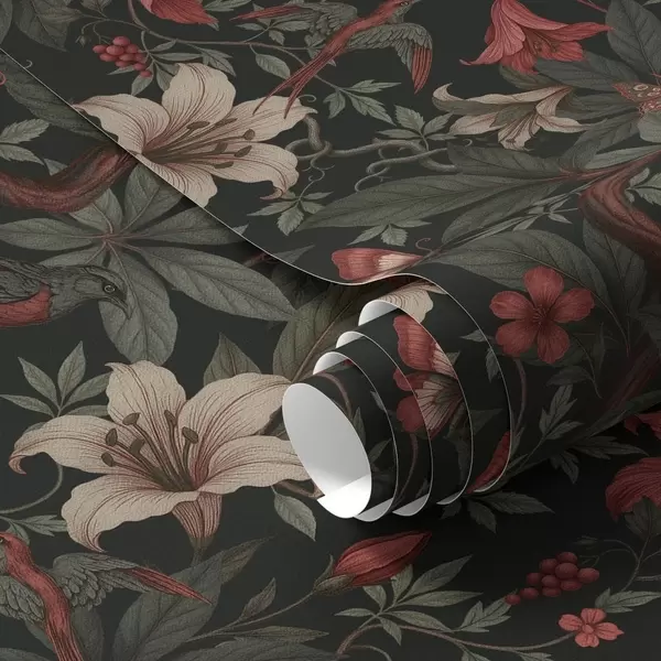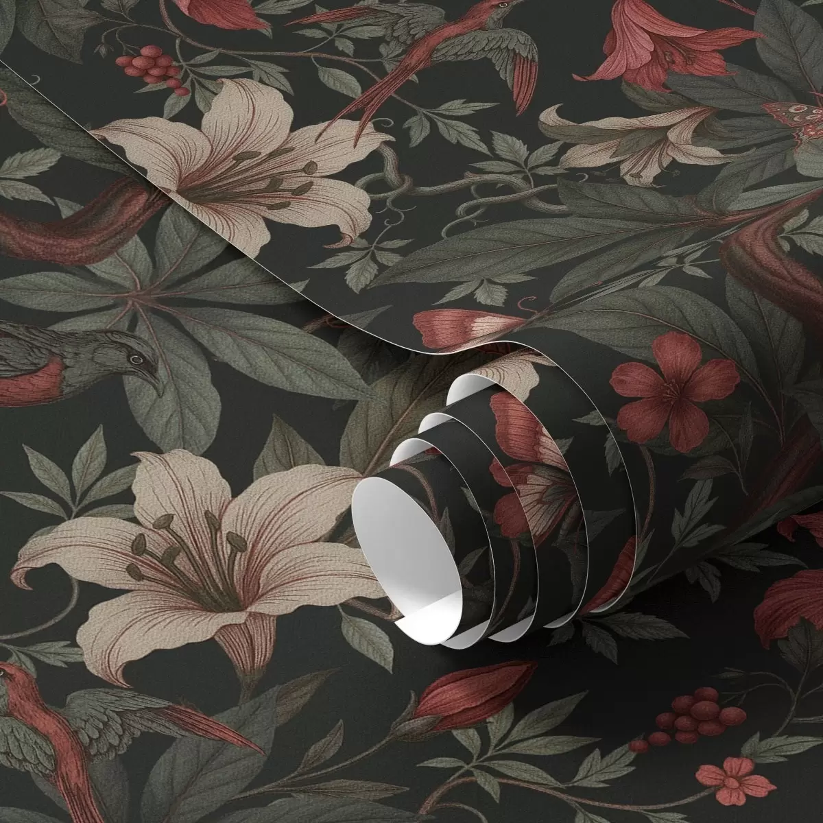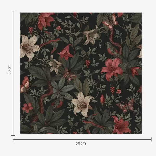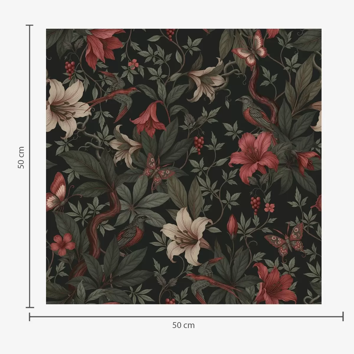 Baggrunde Mørke jungleblomster med fugle og sommerfugle Nr. a00895