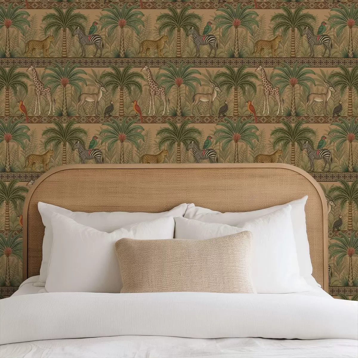 Baggrunde Dekorative savannedyr mellem palmer og kanter Nr. a00898