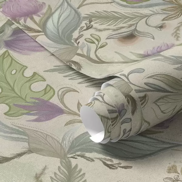 Baggrunde Lilla knopper og blødt grønt på en cremefarvet baggrund Nr. a00930v2