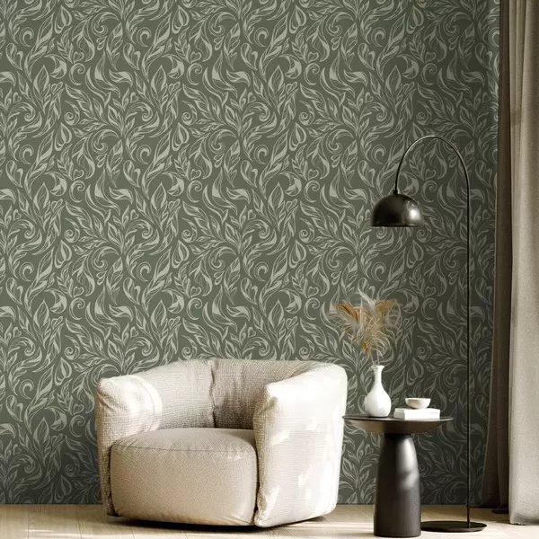 Baggrunde Cremefarvet bladornament på en grønlig-grå baggrund Nr. a00940v2