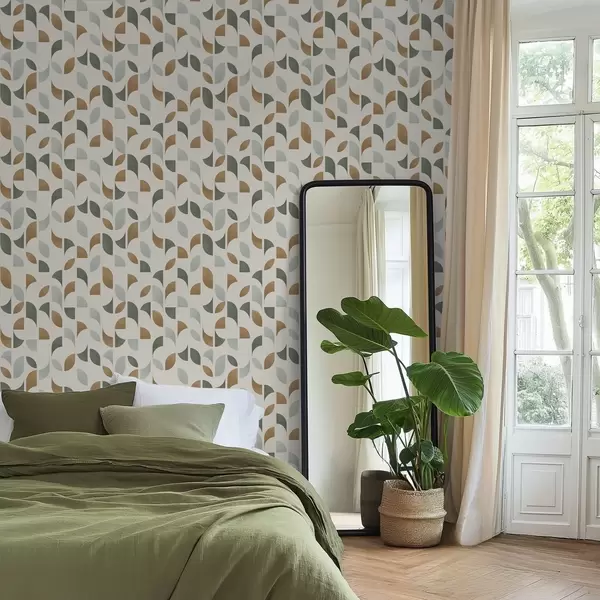 Baggrunde Abstrakte halvcirkler og blade i grøn og terrakotta Nr. a00985