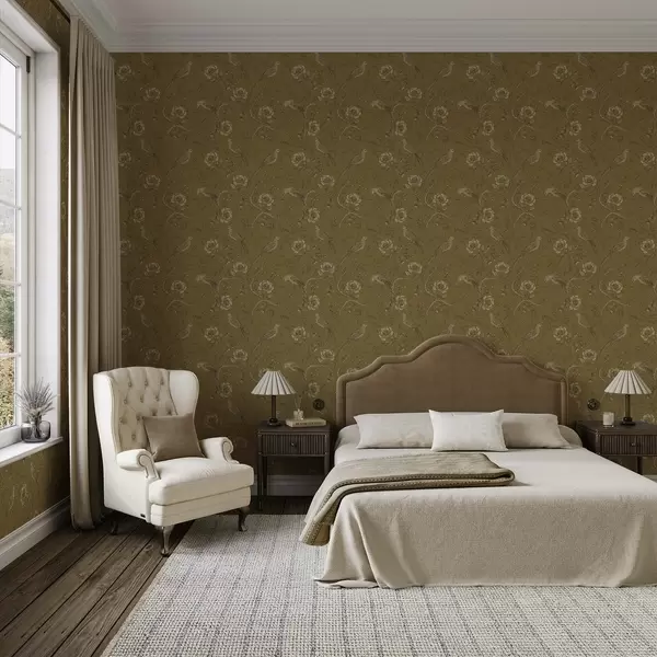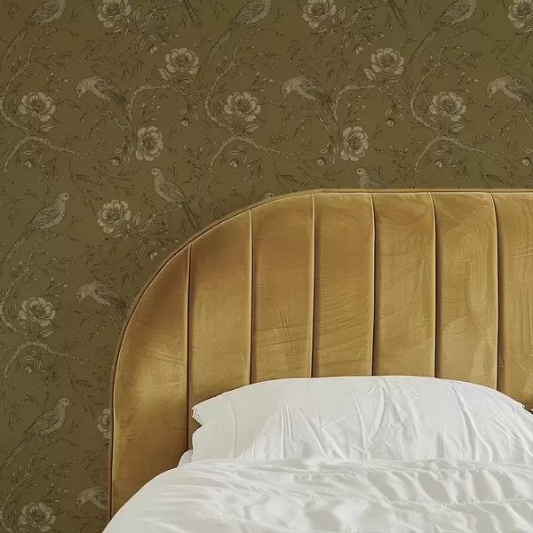 Baggrunde Vintage fugle og blomster på en varm olivenfarvet baggrund Nr. a01022v1