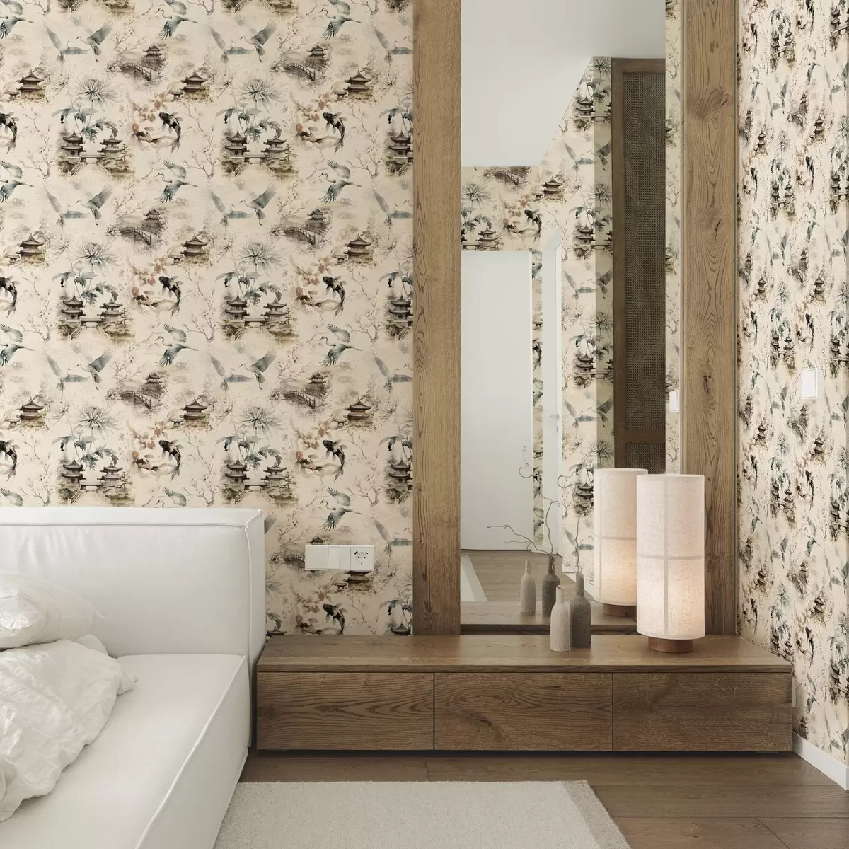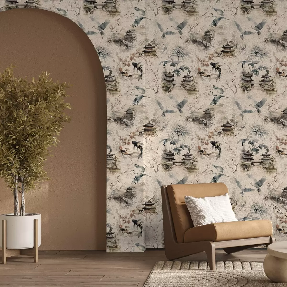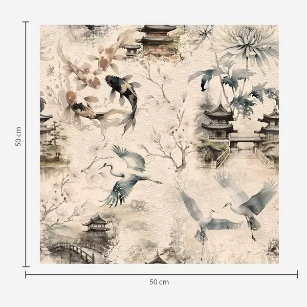 Baggrunde Japanske templer, koi-fisk og traner på en blød baggrund Nr. a01040