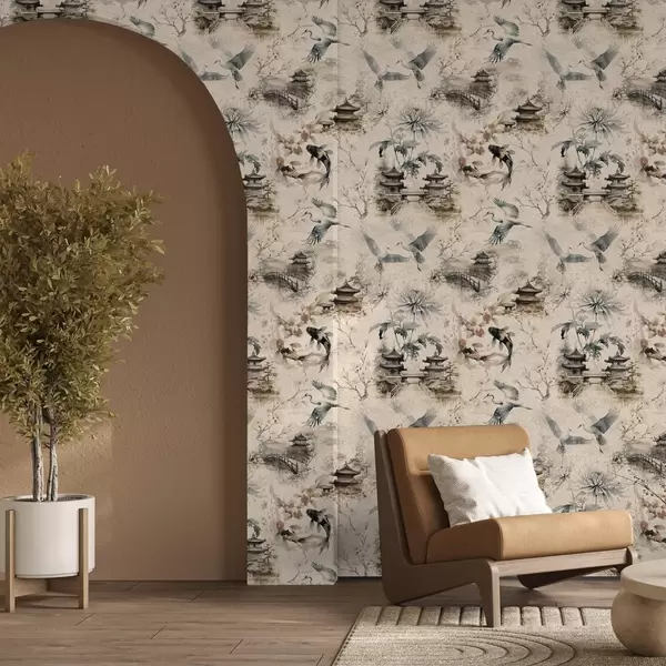 Baggrunde Japanske templer, koi-fisk og traner på en blød baggrund Nr. a01040